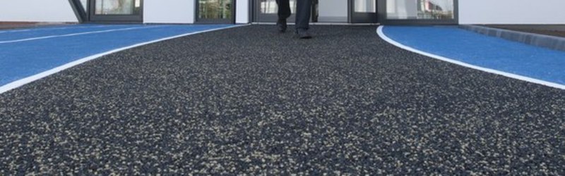 Introducing our latest product, Tygar “Flexi Bound” Surfacing. Formed by a mixture of black rubber granules, the clients choice of decorative natural aggregates and a specialist resin formula binder, Tygar “Flexi Bound” Surfacing is a permeable (SUDS compliant) and durable surface. The slip resistant qualities of this product makes it perfect for pedestrians, cyclists, wheelchair users and push chairs, making it the perfect surface for any residential area. Due to the products permeable qualities no major drainage systems have to be put in place before laying and planning permission is unnecessary; so no time consuming, costly process prior to installation.